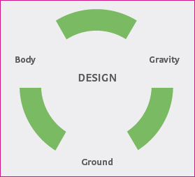 Jede Übung ist durch die Faktoren Erdanziehungskraft (Gravity), Bodenkontakt (Ground) und dem eigenen Körpergewicht (Body) bestimmt, die sich gegenseitig beeinflussen. An der Schwerkraft können wir freilich wenig ändern. Extreme dieses Zusammenspiels sind die Wassergymnastik, bei der wir Auftriebskräfte nutzen, die das Tragen und Bewegen unseres Körpers erleichtern und das Schlingentraining, bei dem wir das Gewicht unseres Körpers noch deutlicher spüren, da wir es an den Unterstützungsflächen der instabilen Schlingen stützen bzw. halten müssen.