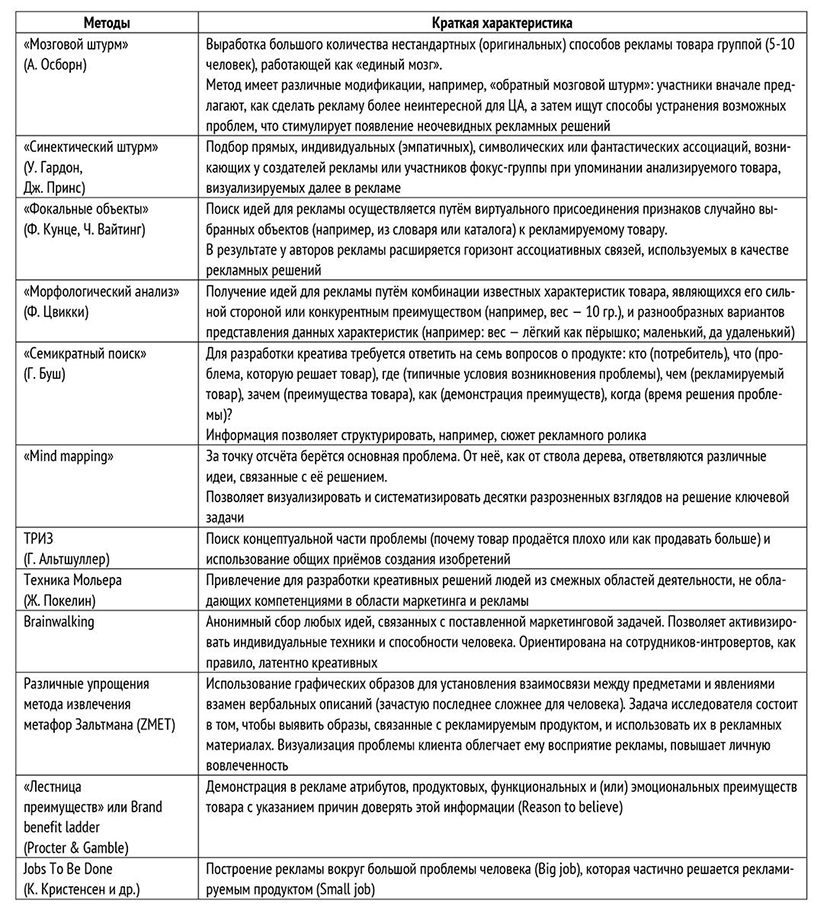 Таблица 1.1 – Эмпирические методы, используемые при создании рекламного контента[6] [7] [8] [9] [10] [11]
