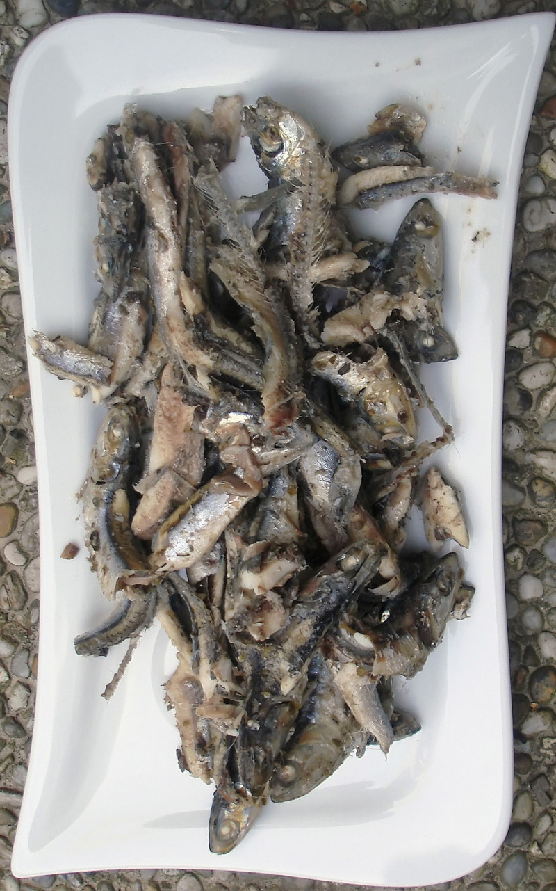 Der beim Abseihen des garum im Tuch verbleibende Rückstand (aber offenbar auch schon die Fischmasse vor dem Filtrieren) hieß (h)allec oder (h) allex. Im Gegensatz zum klaren garum besteht das allec hauptsächlich aus den Tierkörpern, die allerdings – abgesehen vom Skelett – bei der Herstellungsprozedur weitgehend zerfallen sind (Abb. 16). Auch nach dem Abseihen des garum sondern sie immer noch etwas Flüssigkeit ab. Verwendet wurde allec ebenfalls als Würzstoff (Tab. 1, 51). Außerdem diente es aber als selbständiger Speiseartikel, der freilich sehr salzig schmeckt und eine reichliche Menge Gräten enthält. Sie sind jedoch weich und ebenso essbar wie die zarten Knöchelchen im heutigen Couscous.