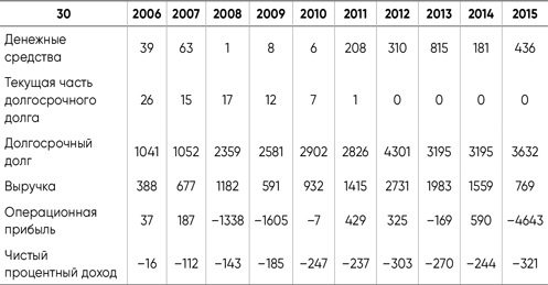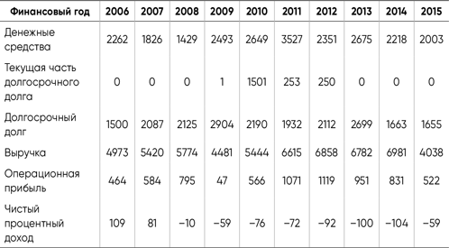 Компании, финансовые показатели которых еще хуже, не смогут выстоять в тяжелые времена и находятся на пути к банкротству или уже обанкротились. Пример такой компании – SandRidge Energy. У нее всегда была высокая долговая нагрузка и очень скромные запасы денежных средств. Это похоже на ситуацию с компанией AutoZone, но SandRidge Energy с трудом генерировала достаточную операционную прибыль, чтобы обслуживать процентные платежи по своему долгу даже в хорошие времена, когда цена на нефть была на рекордно высоком уровне. После резкого падения цен на нефть в 2015 г. компания потеряла большую часть выручки от операционной деятельности и не имела возможности обслуживать долг. В мае 2016 г. она начала процедуру банкротства.