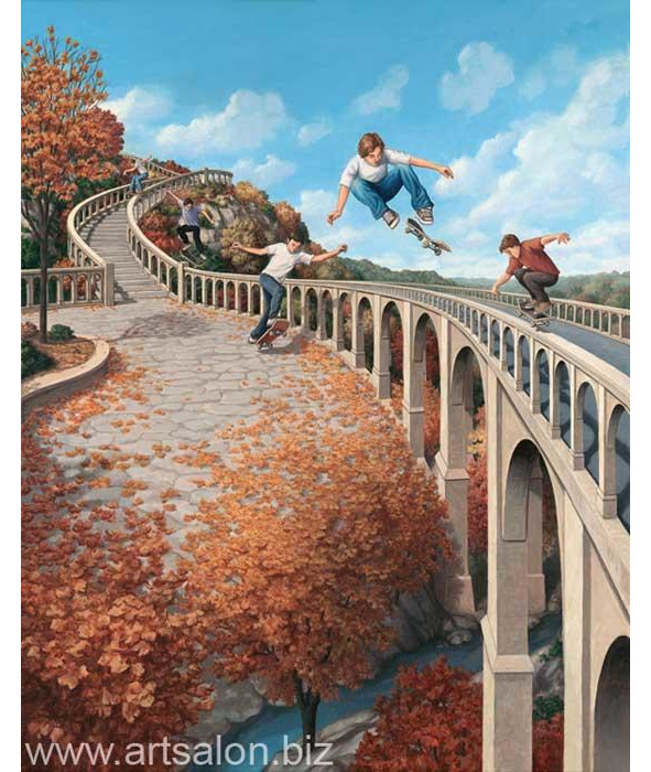 Стой. Если немного сбавить панику, то можно заметить, что весь народ занят своими делами и до меня им нет дела. Им все равно существую я или нет и тем более не важно во что я одета. Наверное блузка – это цель моего разума, моих личных желаний. Но эта цель для меня важна и я должна найти её. Выхожу из комнаты, выбегаю на улицу. Чудесная, солнечная погода, а главное никого нет – отлично. Бегу к огромному мосту. Весь город состоит из одного извилистого моста, который ведёт неизвестно куда. Но я уверена, что нужно направиться именно по этому пути, чтобы отыскать несчастную блузку.