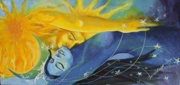 Но она длилась не долго. Бог услышал об этой любви у сплетниц-планет. Творец небесный увидел, как солнце забыв обо всём греет грешную Луну. Он очень рассердился, ведь это было неприемлемо. Он немедленно разделил их, создав день и ночь.
