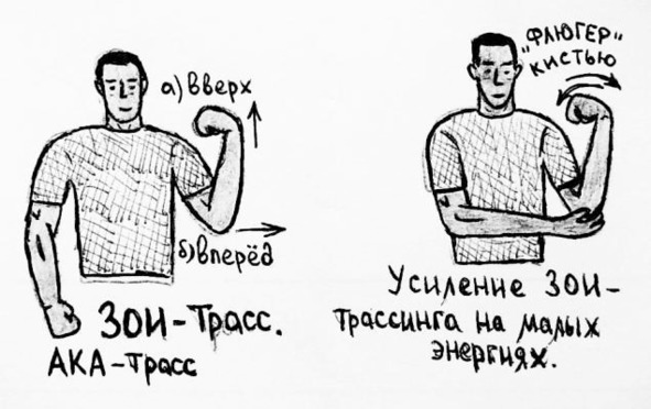 Перед тем, как поднять тяжёлую гирю или штангу, мы обычно делаем глубокий вдох, затем задерживаем дыхание (пауза), после поднимаем тяжесть, и затем делаем выдох. В процессе такого дыхания организм сам мобилизует свою энергию, поэтому оно называется *мобилизующим. Успокаиваясь же перед сном обычно делают короткие неглубокие вдохи, за которыми следуют длительные выдохи и паузы. Таким дыханием организм вводит себя в спокойное состояние, поэтому оно называется *успокаивающим. + Мобилизующее дыхание – удлинённый глубокий вдох (4 сек.), пауза (2 сек.), короткий, энергичный выдох (2 сек). Длительность вдоха превышает длительность выдоха примерно в два раза. + Успокаивающее дыхание – короткий неглубокий вдох (2 сек.), выдох длительностью в 2 вдоха (4 сек.), пауза (1—2 сек.). Это дыхание уменьшает частоту сердцебиения при волнении. Мобилизовывать или успокаивать себя с помощью дыхания можно научиться в любой ситуации и обстановке. Обычно два-четыре такта такого дыхания уже дают эффект. Своё количество таких тактов определяешь сам, с учётом тренированности и состояния в конкретной ситуации.