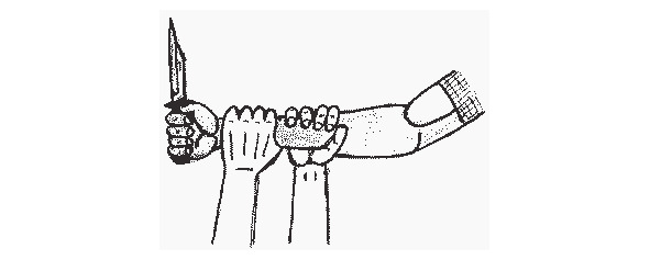 Когда на человека нападают с ножом, кастетом или пистолетом, то он, в первую очередь, старается схватить вооруженную руку и тем самым обезопасить себя от угрозы оружием. Надежно захватить вооруженную руку можно только путем захвата за обнаженную ее часть, так как при захвате за одежду рука с оружием, свободная в лучезапястном или локтевом суставе, может совершать обширные действия. При захвате за одежду удобнее делать бросок, а при захвате за обнаженную часть руки – болевой прием.