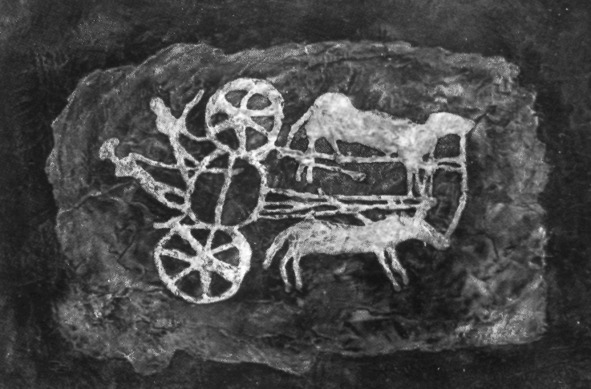 Комментарий. «Современные археологические исследования доказывают, что родиной индоевропейцев является район Южного Урала, где они сформировались в качестве единой языковой группы. … Постепенное потепление вызывало таяние ледников, которые отступали к северу, и земля начинала пробуждаться к жизни, появлялись молодая поросль – растения, их с удовольствие поедали животные, которые мигрировали вместе с таянием ледников. Следом за животными передвигались и первобытные охотники, которые охотились за мигрирующими животными. … Для защиты металлургов создаются общности, сначала на основе общего происхождения – роды, а по мере увеличения товарной продукции формируется уже большая семейная община, состоящая уже из фратрии, т.е. нескольких родов. Затем и соседская община в виде племени, дальнейший шаг – союз племён, ведущий, в свою очередь, к формированию народа, а затем и государства. … Но для любой общности необходима и общность интересов, в данном случае защита металлургов и продукции из них. Так возникали поселки древних металлургов, и в частности, аркаимская культура Южного Урала. Схожие поселения найдены и в Европе, в Германии близ Дрездена и Лейпцига, а также в Австрии и Словакии, возрастом до 7 тысяч лет. После окончания природных ресурсов поселения „закрывались“, рвы засыпались, остатки жилищ сжигались»2. Индоевропейцы жили в степях на юге России. Они кочевали со своими семьями и пожитками в повозках, крытых войлоком, служивших им и жилищами. Колеса были сделаны из массивных дубовых досок, скрепленных скобами. Позднее им на смену пришли колеса со спицами. В повозку впрягали пару волов. Такие повозки послужили прообразом боевых колесниц с лошадьми.