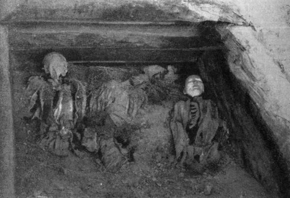 На Руси обожали святочную игру в ожившего покойника. Девушки и парни собирались на чердаке, куда вносили… гроб. В нем – «мертвец»: лицо обсыпано мукой, в зубах – клыки из картошки. Кто-то даже умудрялся помещать в рот горящий уголь, чтобы светиться изнутри. И вот фальшивый усопший начинал немного шевелиться. Поднимал руку, ногу…