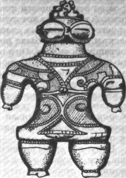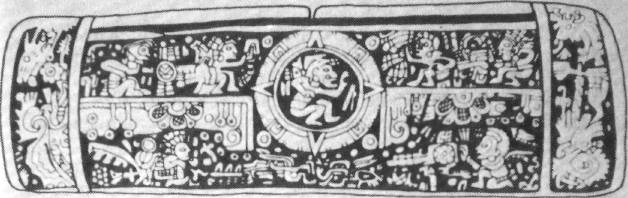 Ett runt "rymdskepp" på ett kultobjekt från Mexiko. Är inte kosmonauternas ankomst till jorden avbildad här? Bland de" tekniska tillbehören " kan djur, blommor, frukter särskiljas.