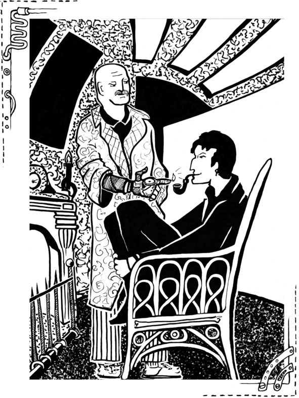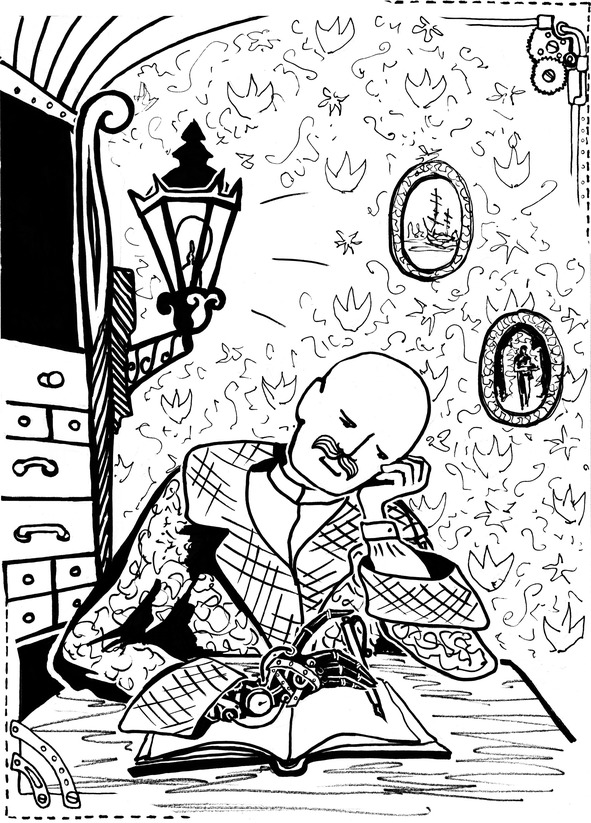 Пристроив на место снятый на ночь механистический протез и пощёлкав для пробы шарнирно-суставчатыми пальцами, я счёл его работу вполне удовлетворительной и, накинув халат, отправился в гостиную. Где обнаружил, что не одному мне не спится в эту ночь – Холмс скрючился в своём любимом кресле, подтянув худые колени к ястребиному носу и выставив перед собой чёрную глиняную трубку, похожую на клюв какой-то странной птицы. Трубка его не горела, глаза были закрыты, и я уже подумал было, что он спит, и собирался тихонько вернуться к себе, когда мой друг шевельнулся и спросил негромко: