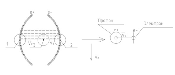 Очевидно, что позитрон, связанный с антинейтрино, должен обладать большей массой, чем отдельный электрон. Давайте сделаем важный вывод. Переходя к ядерной физике, скажем, что позитрон с антинейтрино – это протон, а электрон – это электрон.