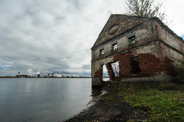 Перейдя по другой дамбе, к югу от центрального острова, мы попадаем на территорию Нижних промыслов. В этой части города располагались преимущественно производственные помещения. Сользавод здесь действовал до создания Камского водохранилища. Интересно, что до середины прошлого века здесь работал санаторий, где больных лечили природными рассолами.