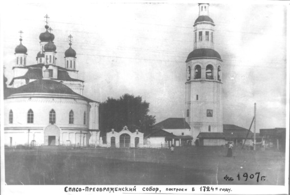 Под №1 на карте отмечен Спасо-Преображенский собор (1724—1731 гг.). В советское время в храме размещался пивзавод, на сегодняшний день храм действующий. Вблизи юго-восточного угла храма находятся руины часовни Спаса-Убруса, по некоторым данным старейшего каменного здания Усолья, построенного в XVII веке.
