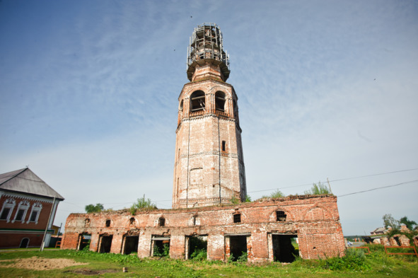На берегу залива Камы, около моста, соединяющего Березники с правобережной частью города и Усольем, с дороги видно кирпичные руины (59°26’32˝ с.ш. 56°42’54˝ в.д.), с зелёными пятнышками изразцов. А это один из старейших храмов Прикамья: Троицкая церковь, построенная в 1688 году в бывшем селе Лёнва. История села начинается в XVII, в пору расцвета добычи соли в Прикамье. На берегу речки Лёнвы, небольшого притока Камы, купцы Шустовы и Филатовы построили солеваренный завод. Рассолы в этом месте были богатыми, Лёнвенский промысел приносил большие доходы владельцам, которыми полностью стали Шустовы. На свои деньги они строят каменные палаты, которые в 1688 году перестраивают в церковь. То есть в руинах этой церкви, вероятно, скрыто самое старое гражданское каменное здание Урала.
