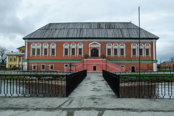 Далее (№3 на карте) мы видим Палаты Строгановых (1724 г.). В настоящее время в здании проводятся различные выставки. Украшениями палат служат две печи, украшенные изразцами. В плане здание состояло из четырёх палат, соединённых сенями, в противоположных углах здания располагались два сейфа. А в подклете (цокольном этаже) располагались помещения для слуг и каретный сарай. После раздела строгановского имения, рядом со «строгановским ансамблем» стали появляться особняки других владельцев солеваренных заводов. Да и сами строгановские палаты стали принадлежать разным владельцам после переноса главного правления имением в село Ильинское. Владельческие дома возводились в основном на берегу Камы в архитектурном стиле классицизм. В настоящее время здание используется, как площадка для различных выставок. Телефоны музея; +7 (3424) 42-20-87 и +7 (3424) 43-00-57. В итоге в 1833 гг. Строгановы возводят для своих служб здание, известное сейчас, как «контора сользаводов» (№4 на карте). Сейчас в нём размещается женский монастырь. Здание построено по стандартному проекту, дополненному крепостным архитектором Т. Тудвасёвым.