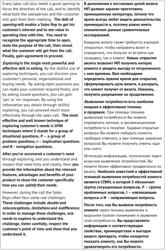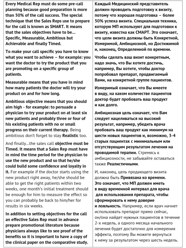 1. Я не уверен, что каждый Медицинский представитель выполняет подготовку к визиту.