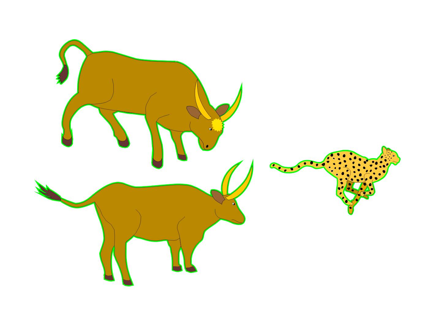 Маленький буйволёнок повертел головой и увидел, что все взрослые родичи с удовольствием щиплют сочную зелёную травку. Сам он был ещё маленьким. Питался лишь молоком своей мамы и недавно напился его до отвала. Поэтому, жесткая и колючая пища ему показалась невкусной. Он шагнул в сторону и отбился от стада.