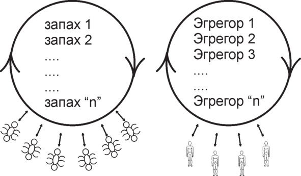 Рис. 7. Не правда ли, удивительно похоже? Что запахи у муравьев, что влияние энергоинформационных паразитов – и то и другое передается от особи к особи, поддерживая и распространяя управляющее воздействие.