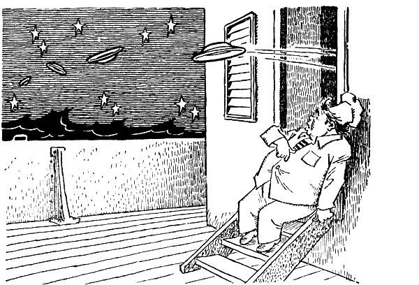 За бортом весело бежали волны, и в лад им торопились мысли Перчикова. Вокруг вспыхивали тысячи светлячков, и в голове Перчикова, как светлячки, загорались новые удивительные идеи.