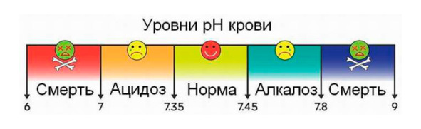 Если у человека повышается этот показатель хотя бы на несколько сотых единиц, начинается АЛКАЛОЗ.