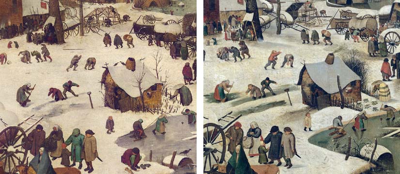A vanishing point: The Census at Bethlehem, detail – Elder (top) and Younger (bottom)