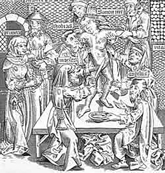 Меня немедленно обо всем известили, и я не замедлил заняться этим делом со всем усердием и in crastinum[40] приказал управляющим окрестных имений и господам выдать прочих виновных, а когда те проявили нерасторопность, сам отправился в те имения и убеждал ясновельможных господ произвести аресты. Так мы задержали тридцать одного мужчину и двух женщин; закованных в кандалы, их привезли в Житомир, где посадили в специально вырытые для этого ямы. После отъезда инквизиторов я отослал обвиняемых в гродский суд[41]. Суд, желая раскрыть убийц злодеяния, постановил приступить к изучению strictissime[42] представших перед ним евреев, тем более что некоторые из них меняли свои показания, данные перед консисторским судом, а также опровергали обвинительные показания христиан. Тогда обвиняемых подвергли пыткам, осуществленным руками палача святого правосудия, и трижды истязали огнем. Вскоре из их совместных признаний выяснилось, что Янкель и Эля, арендаторы трактира в Марковой Волице, поддавшись уговорам Шмайера, раввина из Паволочи, якобы то дитя схватили, завели в трактир, напоили водкой, а затем раввин ножиком проткнул ему левый бок. Затем они по книгам читали свои молитвы, другие же евреи гвоздями и длинными булавками кололи и из всех жил выдавливали невинную кровь в чашу, после чего раввин оделил ею всех присутствующих, разлив ее по бутылкам.