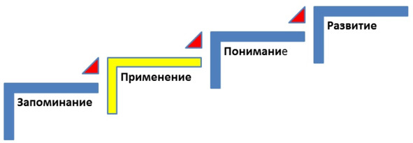 На протяжении всех наших тренировок мы будем применять классическую педагогическую методологию: запоминание – применение – понимание – развитие.