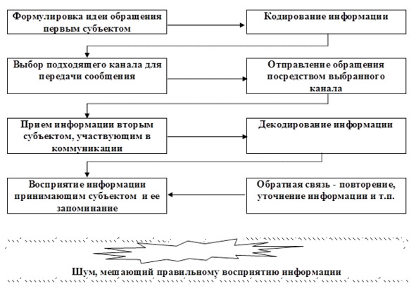 Процесс коммуникации, обеспечивающий обмен информации между субъектами, включает в себя различные подпроцессы, изображенные на рисунке 16.
