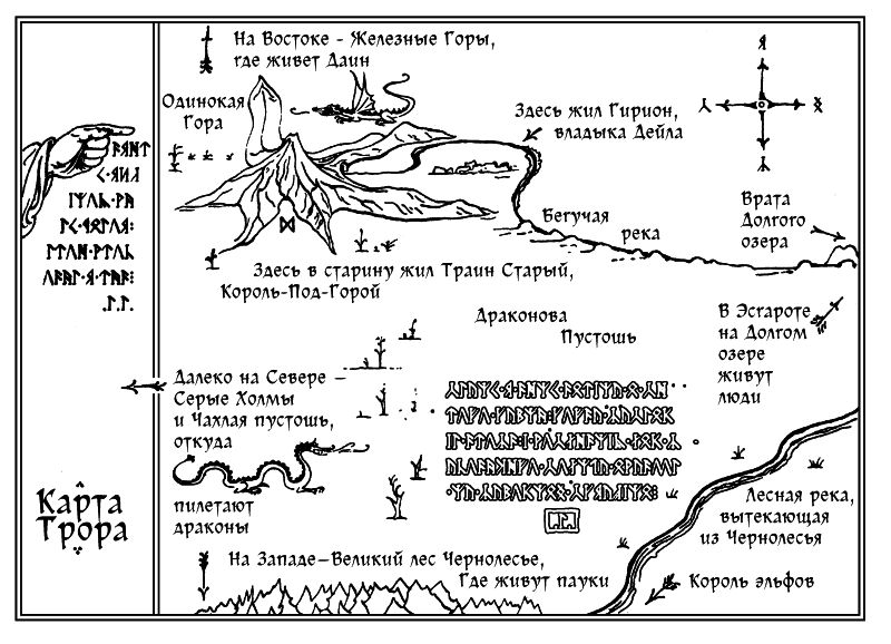 Пока гномы пели, хоббиту чудилось, будто в него исподволь вливается любовь к прекрасным вещам, рукотворным или сотворенным чародейством, яростная и ревнивая любовь, вечная мука гномьих сердец. И внезапно в нем пробудилась унаследованная от Туков тяга к странствиям, и он возжелал отправиться в путь вместе с гномами, захотел увидеть воочию Великие Горы, услышать шелест сосен и грохот водопадов, спускаться в пещеры, носить вместо дубинки меч… Бильбо посмотрел в окно. Над темным лесом сверкали звезды, напомнившие хоббиту самоцветные каменья гномов. Вдруг в лесу взметнулось пламя – наверно, кто-то разжег костер, – и Бильбо подумалось, что это дракон, который летит сюда, чтобы спалить Кручу. Он вздрогнул и вновь стал самим собой – прежним господином Торбинсом из Торбы-на-Круче. (Должно быть, вы уже догадались, что Бильбо только притворялся обыкновенным хоббитом – и перед другими, и перед собой: на самом-то деле всякие небылицы вроде тех, что приносил в Хоббитанию Гэндальф, были ему куда милее житейских забот да повседневных хлопот.)