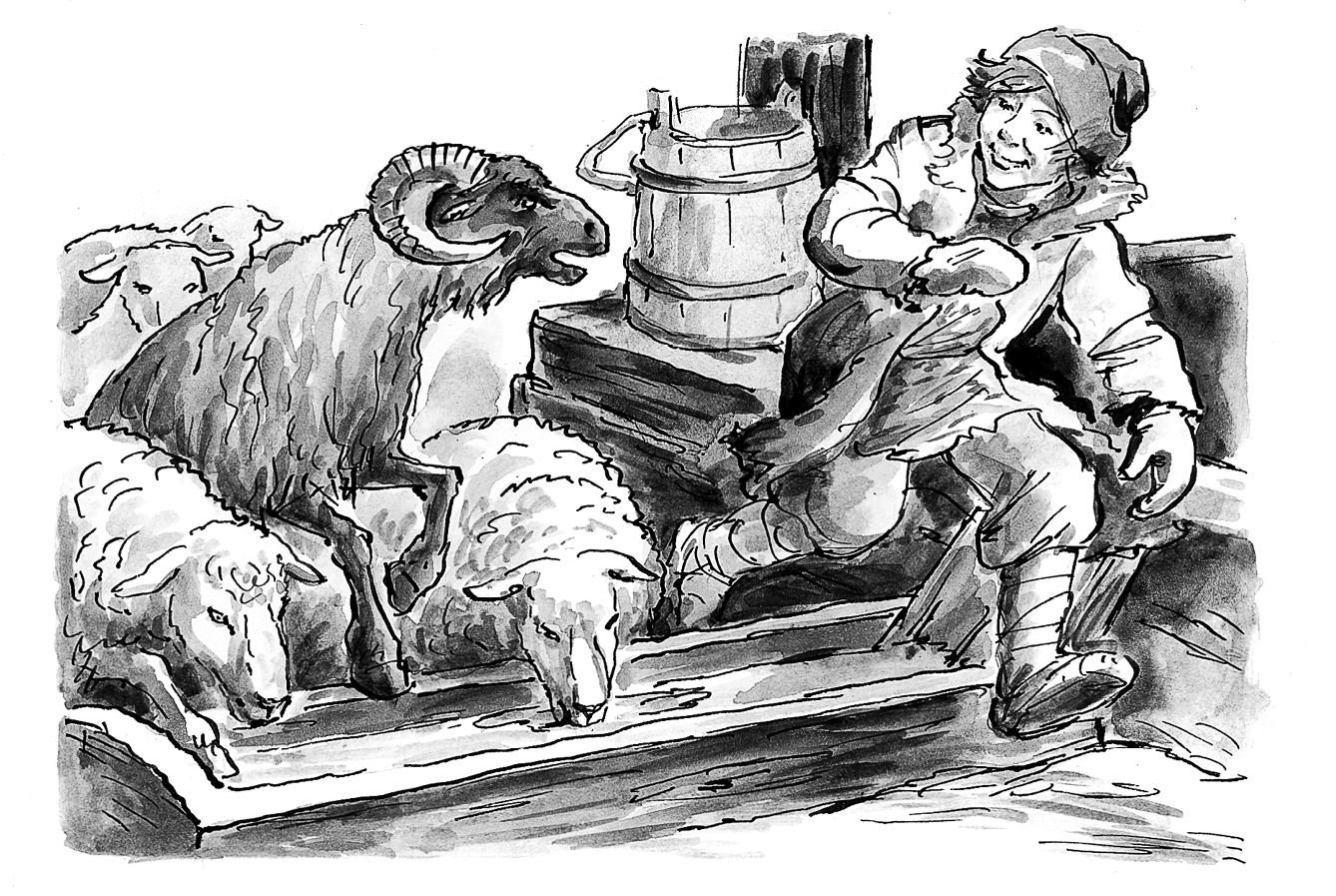 Никита и Мишка побежали по двору, смеясь и дразнясь. Баран погнался за ними, но подумал и заблеял: «Саааами безде-е-е-ельни-ки!»