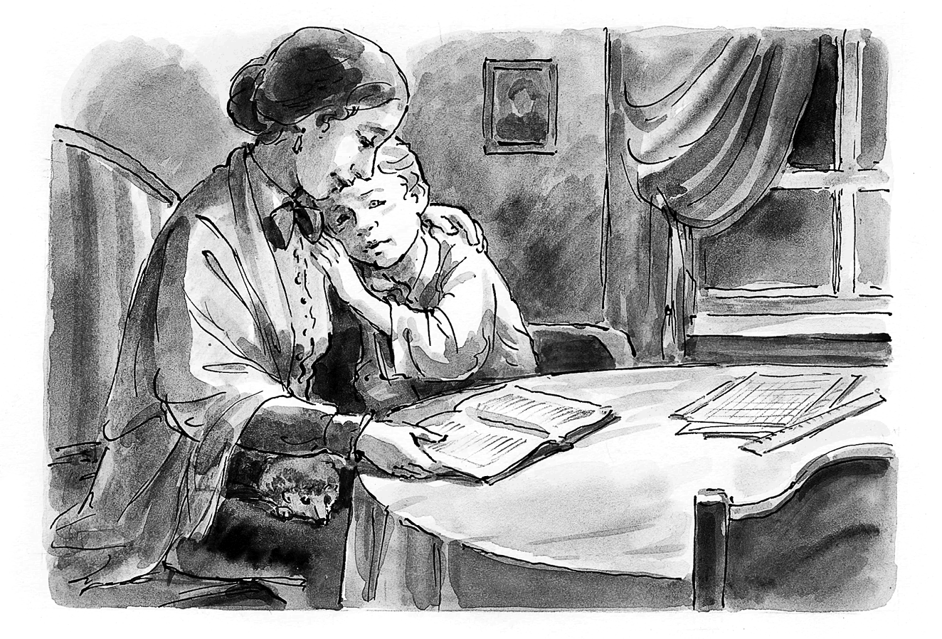 Никита слез со стула и сел около матушки. Она, ласково улыбнувшись, привлекла Никиту и поцеловала в голову: