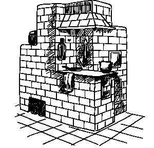 Это отопительная, толстостенная печь, поверхность которой покрыта изразцами – керамическими плитками специальной формы, они очень красиво расписывались и выглядели нарядно. Кроме внешней привлекательности эти печи обладали удобной в уходе поверхностью – гладкие изразцы легко мыть. Изразцы долго держат тепло и не обожжешься.