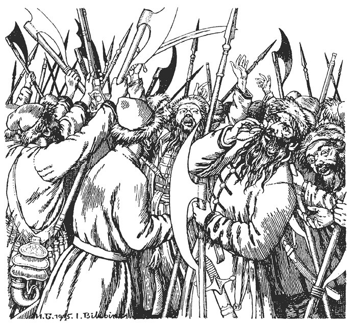 – Рады, сучьи дети, что отец мой больной лежит. Сарынь! Прочь отсюда, псы, холопы…
