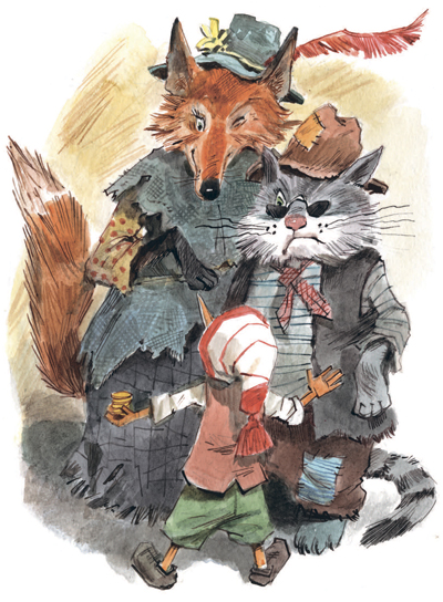 По дороге домой Буратино встречает двух нищих – кота Базилио и лису Алису