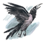 На сухой ветке около дороги сидела пожилая ворона. Слушала, слушала и каркнула: