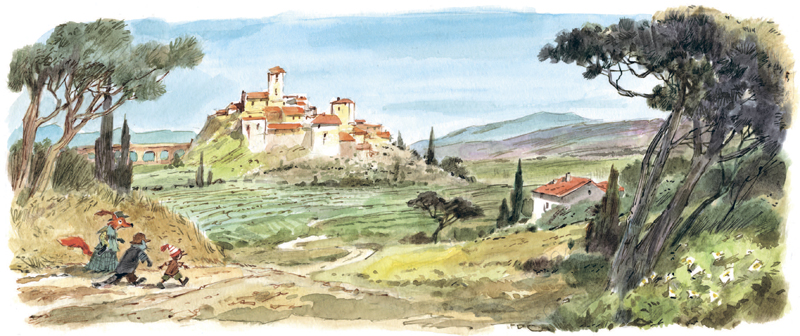 Б уратино, лиса Алиса и кот Базилио спустились под гору и шли, шли – через поля, виноградники, через сосновую рощу, вышли к морю и опять повернули от моря через ту же рощу, виноградники…