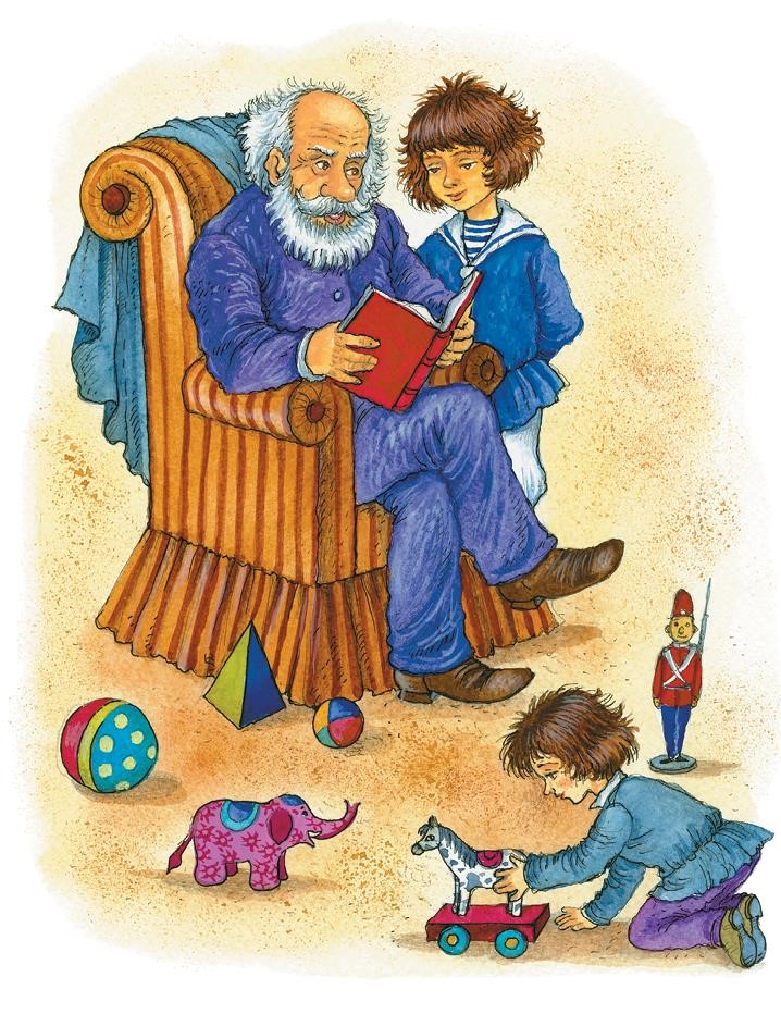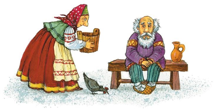Стал дед очень стар. Ноги у него не ходили, глаза не видели, уши не слышали, зубов не было. И когда он ел, у него текло назад изо рта. Сын и невестка перестали его за стол сажать, а давали ему обедать за печкой.