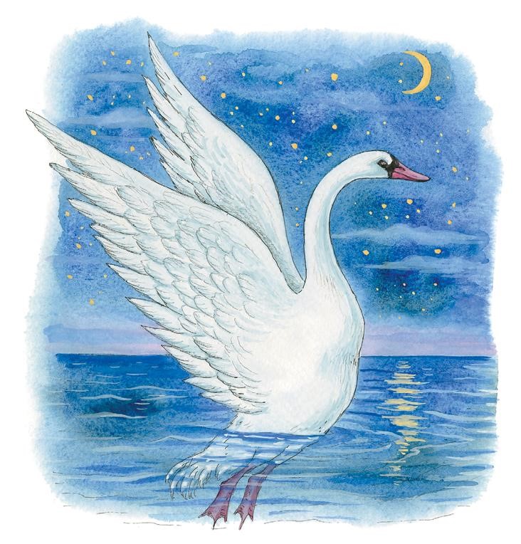 Лебедь спустился на воду и сложил крылья. Море всколыхнулось под ним и покачало его. Стадо лебедей чуть виднелось белой чертой на светлом небе. И чуть слышно было в тишине, как звенели их крылья. Когда они совсем скрылись из вида, лебедь загнул назад шею и закрыл глаза.