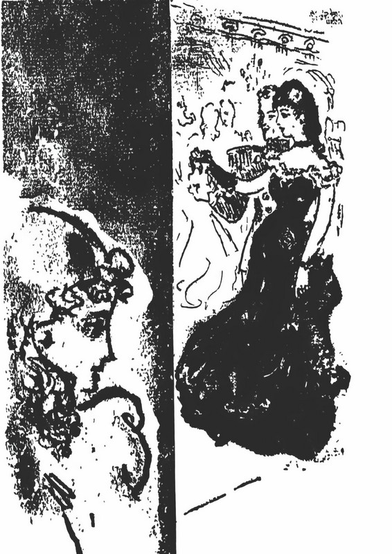 Она зашла в глубь маленькой гостиной и опустилась на кресло. Воздушная юбка платья поднялась облаком вокруг ее тонкого стана; одна обнаженная, худая, нежная девичья рука, бессильно опущенная, утонула в складках розового тюника; в другой она держала веер и быстрыми, короткими движениями обмахивала свое разгоряченное лицо. Но, вопреки этому виду бабочки, только что уцепившейся за травку и готовой, вот-вот вспорхнув, развернуть радужные крылья, страшное отчаяние щемило ей сердце.