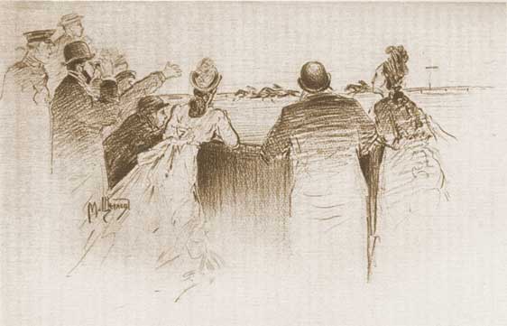 XXVВсех офицеров скакало семнадцать человек. Скачки должны были происходить на большом четырехверстном эллиптической формы кругу пред беседкой. На этом кругу были устроены девять препятствий: – река, большой, в два аршина, глухой барьер пред самою беседкой, канава сухая, канава с водою, косогор, ирландская банкетка, состоящая (одно из самых трудных препятствий) из вала, утыканного хворостом, за которым, невидная для лошади, была еще канава, так что лошадь должна была перепрыгнуть оба препятствия или убиться; потом еще две канавы с водою и одна сухая, – и конец скачки был против беседки. Но начинались скачки не с круга, а за сто сажен в стороне от него, и на этом расстоянии было первое препятствие – запруженная река в три аршина шириною, которую ездоки по произволу могли перепрыгивать или переезжать вброд.