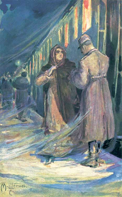 И она отворила дверь. Метель и ветер рванулись ей навстречу и заспорили с ней о двери. И это ей показалось весело. Она отворила дверь и вышла. Ветер как будто только ждал ее, радостно засвистал и хотел подхватить и унести ее, но она рукой взялась за холодный столбик и, придерживая платье, спустилась на платформу и зашла за вагон. Ветер был силен на крылечке, но на платформе за вагонами было затишье. С наслаждением, полною грудью, она вдыхала в себя снежный, морозный воздух и, стоя подле вагона, оглядывала платформу и освещенную станцию.