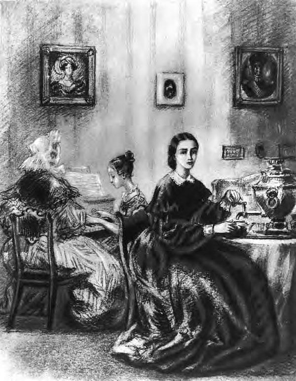 Наконец явился давно желанный и пунктуальный Фока, и мы пошли вниз. Гриша, всхлипывая и продолжая говорить разную нелепицу, шел за нами и стучал костылем по ступенькам лестницы. Папа и maman ходили рука об руку по гостиной и о чем-то тихо разговаривали. Марья Ивановна чинно сидела на одном из кресел, симметрично, под прямым углом, примыкавшем к дивану, и строгим, но сдержанным голосом давала наставления сидевшим подле нее девочкам. Как только Карл Иваныч вошел в комнату, она взглянула на него, тотчас же отвернулась, и лицо ее приняло выражение, которое можно передать так: я вас не замечаю, Карл Иваныч. По глазам девочек заметно было, что они очень хотели поскорее передать нам какое-то очень важное известие; но вскочить с своих мест и подойти к нам было бы нарушением правил Мими. Мы сначала должны были подойти к ней, сказать: «Bonjour, Mimü», шаркнуть ногой, а потом уже позволялось вступать в разговоры.
