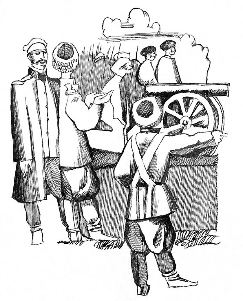 – А у нас одного солдатика нет, Николай Петрович! – сказала, подходя ко мне, черная фигура, которую я только по голосу узнал за взводного фейерверкера Максимова.