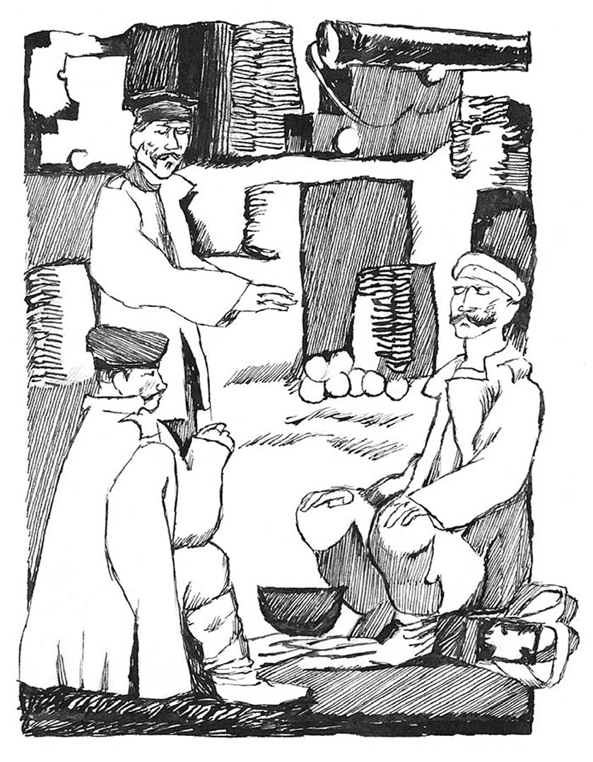 – О-ой, отцы мои, вы наши отцы! – кричал солдат, умоляя, чтобы его не трогали.