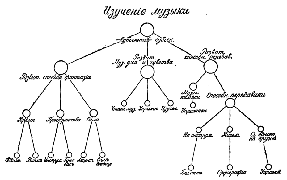 Музыкальной Анализъ.Для настоящаго изученія музыки я нахожу необходимымъ для учащагося послѣ изученія первыхъ правилъ музыки, т. е. нотъ и интерваловъ, темпа и аксентуаціи, анализировать музыку, т. е. смотря по тому, какую часть музыки кто прошелъ, разсматривать музыкальное сочиненіе въ отношен[iи] правилъ науки; для того же, кто прошелъ полный курсъ науки музыки, анализировать музыку слѣдующимъ образомъ:170 1) въ отношеніи пр[остранства] – отдѣльно всякій звукъ, т. е. какой интервалъ составляетъ одинъ звукъ съ тоникой, 2) въ отношеніи времени – отдѣльно всякій звукъ въ отношеніи къ всему такту, т. е. какую составляетъ звукъ часть всего такта, 3) въ отношен. силы, какую степень каждый звукъ имѣетъ въ отнош[еніи] означенной общей [для] всей пьесы степени силы. Это будетъ составлять, такъ сказать, смыс[лъ] граматической – низшій.