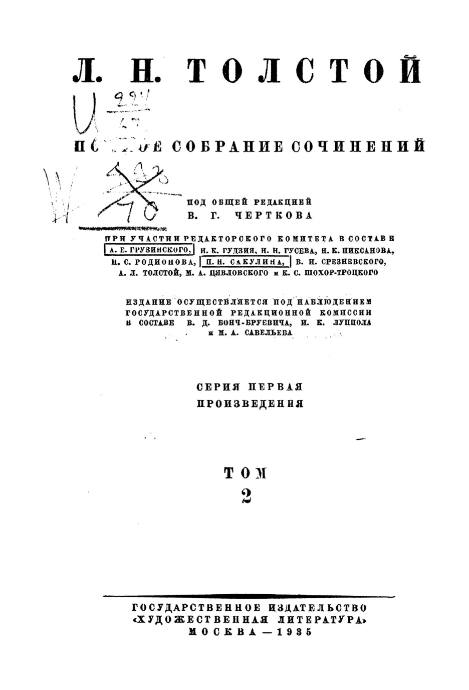 Написанное Толстым в скобках воспроизводится в круглых скобках. Подчеркнутое воспроизводится курсивом. Дважды подчеркнутое – курсивом с оговоркой в сноске.