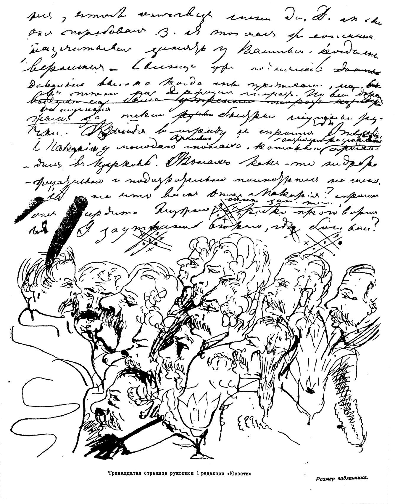 Успѣхъ этихъ 2-хъ и еще 3-хъ слѣдующихъ экзаменовъ такъ раздулъ во мнѣ самолюбіе, что уже для меня дѣло шло не о томъ, чтобы выдержать экзаменъ, но о томъ, чтобы выдержать его лучше всѣхъ. – Былъ одинъ блѣдный гимназистъ въ узенькихъ взодравшихся брюкахъ, коротенькомъ мундирчикѣ, съ мутными впалыми глазами и обгрызанными до заусенцовъ ногтями, который одинъ только экзаменовался лучше меня, и я, признаюсь, съ досадой, злобой даже, смотрѣлъ на него. Мнѣ противно было его лицо и руки и волоса и колѣнки [1 неразобр.] и тетрадки – все противно было въ немъ. Мнѣ бы хотѣлось, чтобы онъ провалился (словцо, которому я выучился у товарищей, означающее не выдержать экзамена); но, такъ какъ видно было, что это невозможно, я даже не отказался бы отъ того, чтобы съ нимъ случилось какое нибудь несчастье, помѣшавшее бы ему экзаменоваться, чтобы онъ сломалъ себѣ ногу, или заболѣлъ хорошенько. Я видѣлъ, что онъ превзойдетъ меня, а быть первымъ мнѣ казалось верхомъ наслажденія. Не для того, чтобы гордиться передъ товарищами – о нихъ я не думалъ, но для своихъ – мнѣ хотѣлось въ деревнѣ похвастаться передъ папа или St.-Jérôm’омъ. Но Латинскій экзаменъ сразу уничтожилъ мои честолюбивые планы и злобу къ блѣдному гимназисту. – Уже съ перваго экзамена всѣ гимназисты вольные разсказывали намъ съ какимъ-то трепетомъ про латинскаго профессора Нецера, который, по словамъ всѣхъ, былъ какой-то извергъ, говорившій только по-гречески и по-латынѣ и наслаждающійся въ погибели молодыхъ людей и особенно не любившій и угнетавшій нашего брата – вольныхъ. St.-Jérôme, который былъ моимъ учителемъ Латинскаго языка, ободрялъ меня, да и мнѣ казалось, что, умѣя переводить Цицерона безъ лексикона, половину одъ Горація и зная отлично Цумпта, я былъ приготовленъ не хуже другихъ; но вышло не такъ. Когда насъ вызвали опять вмѣстѣ съ Иконинымъ, уже я предчувствовалъ что-то недоброе. Нецеръ былъ одинъ на своемъ столикѣ. Это былъ маленькой не старый человѣчекъ съ длинными русыми волосами и не дурной наружности, но жолтый, видно, что злой. – Онъ далъ Иконину книгу рѣчей Цицерона и заставилъ переводить его. Къ великому удивленію моему, Иконинъ не только умѣлъ читать, но и перевелъ нѣсколько строкъ, хотя и съ помощью профессора. Чувствуя свое превосходство знаній передъ такимъ слабымъ соперникомъ, я не могъ удержаться отъ самодовольной и нѣсколько презрительной улыбки, особенно, когда дѣло дошло до анализа и старый по-прежнему далъ столбняка.