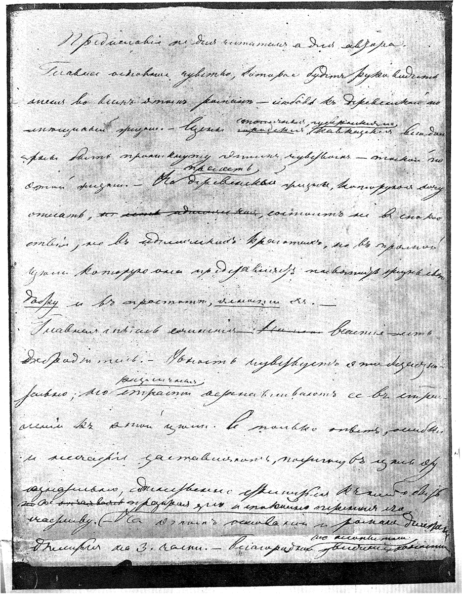 Первая страница рукописи «предисловия не для читателя, а для автора».