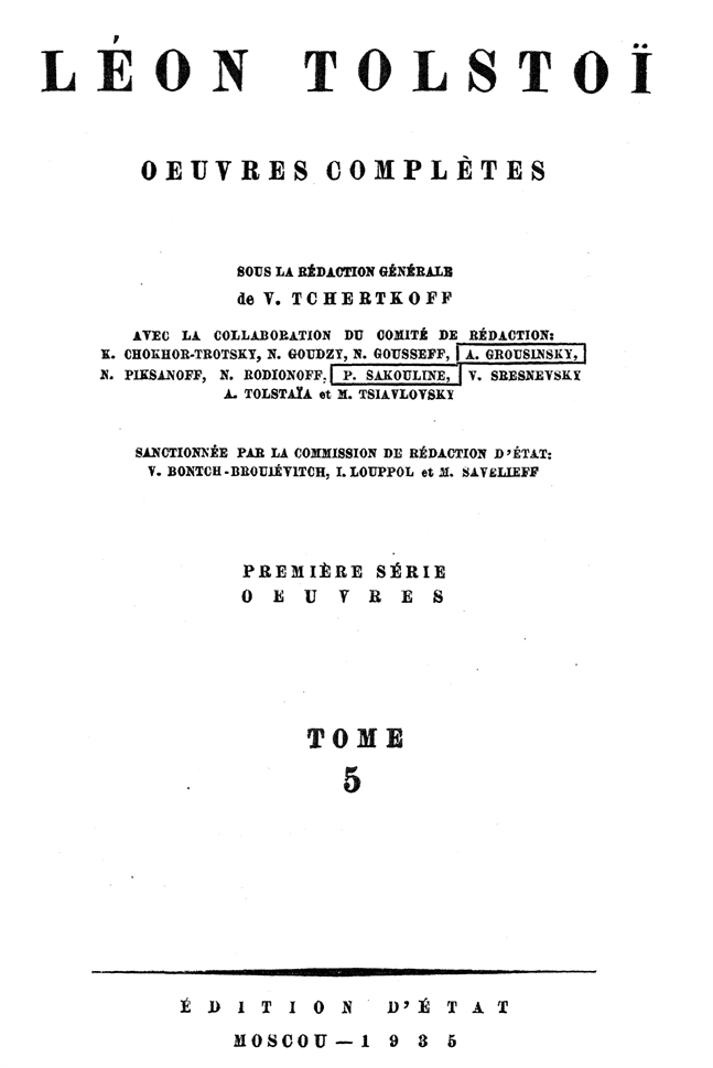 Обозначения: *, **, ***, ****, в оглавлении томов, на шмуцтитулах и в тексте, как при названиях произведений, так и при номерах вариантов, означают: * – что печатается впервые, ** – что напечатано после смерти Л. Толстого, *** – что не вошло ни в одно из собраний сочинений Толстого и **** – что печаталось со значительными сокращениями и искажениями текста.