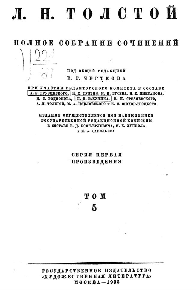 Подготовлено на основе электронной копии 5-го тома Полного собрания сочинений Л. Н. Толстого, предоставленной Российской государственной библиотекой