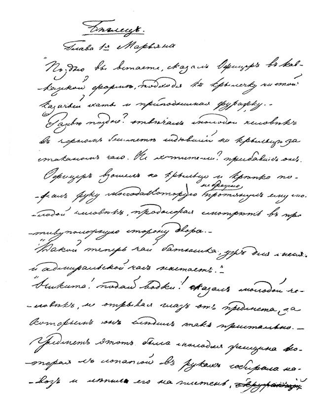 Всѣ поздоровались, исключая Олѣнина, который оглянулся и только поморщился. Марьяна сѣла на лавку, капитанъ налилъ и подалъ ей чаю.