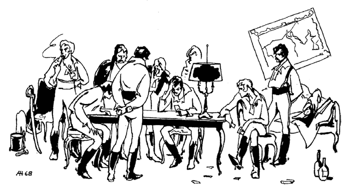 Подвинув вперед деньги, Долохов приготовился метать. Ростов сел подле него и сначала не играл. Долохов взглядывал на него.